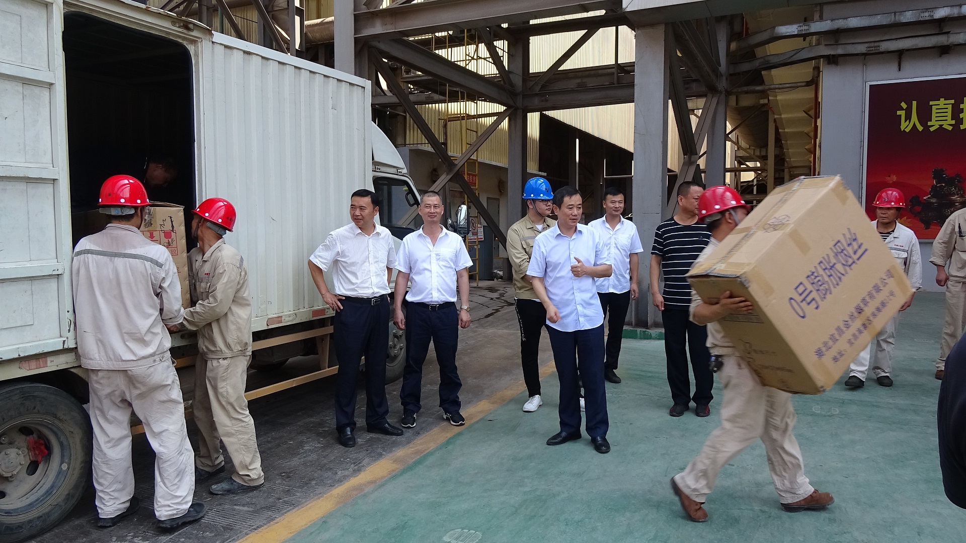 【概要描述】連日的持續(xù)高溫,酷熱難當(dāng)。7月31日上午,縣委常委、縣總工會(huì)主席余忠東一行蒞臨公司開(kāi)展暑期“送清涼”活動(dòng),親自為仍堅(jiān)守、奮戰(zhàn)在生產(chǎn)、建設(shè)一線的金盛蘭職工送上綠豆、礦泉水等防暑物品。??在送清涼活動(dòng)中,余主席仔細(xì)了解公司一線職工的工作和生活情況。他指出,在抓好生產(chǎn)、經(jīng)營(yíng)和新項(xiàng)目工程建設(shè)的同時(shí),要高度關(guān)注、重視高溫天氣下職工的健康和安全,扎實(shí)做好防暑降溫和安全生產(chǎn)工作,確保生產(chǎn)、安全兩不誤。一線職工要